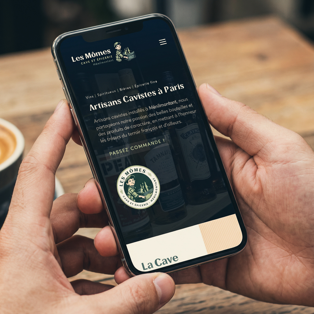 Création d’une identité visuelle et d’un site web sur mesure pour Les Mômes, cave à vin et épicerie à Paris.